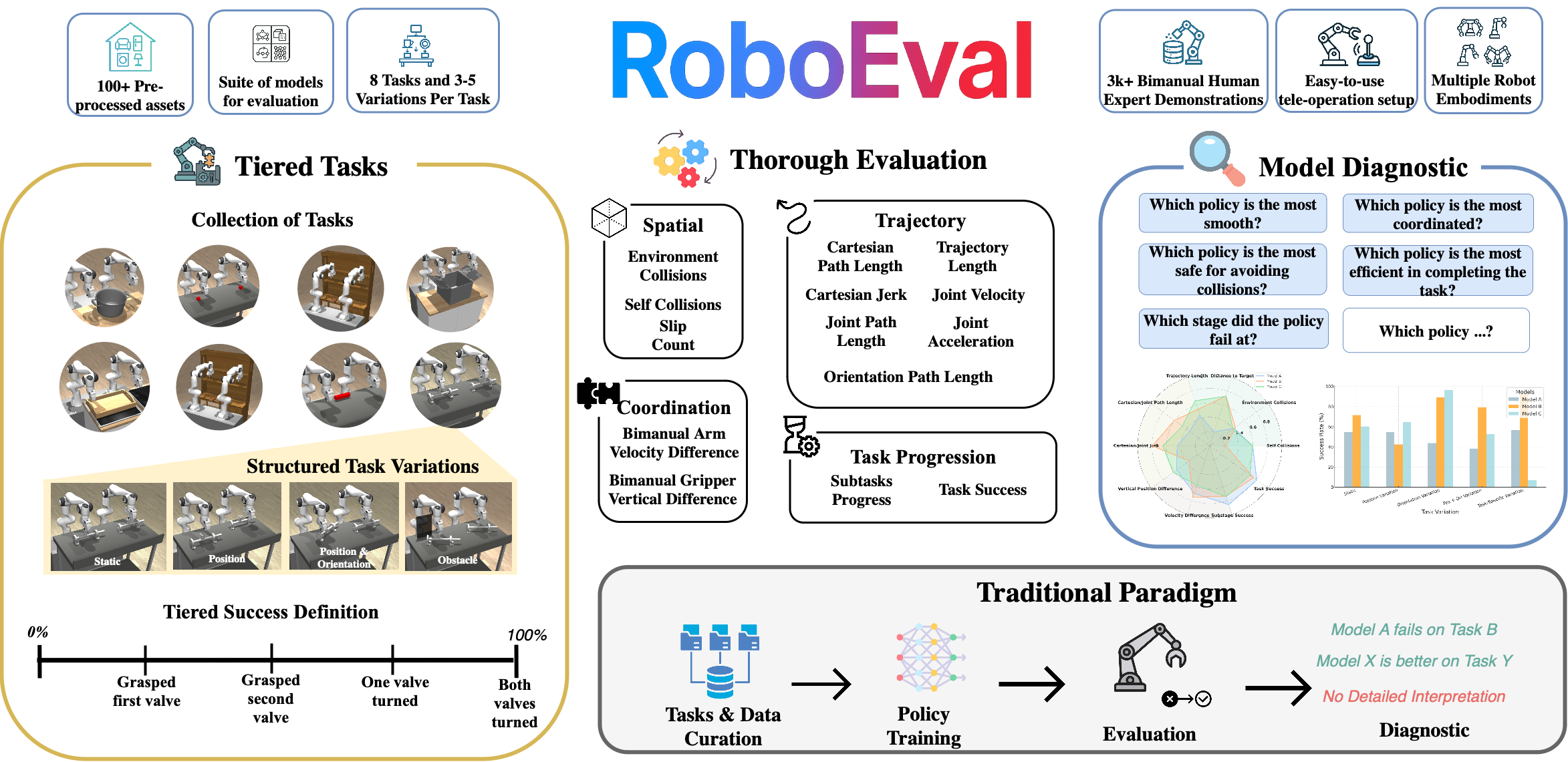 Read our paper: RoboEval: Where Robotic Manipulation Meets Structured and Scalable Evaluation