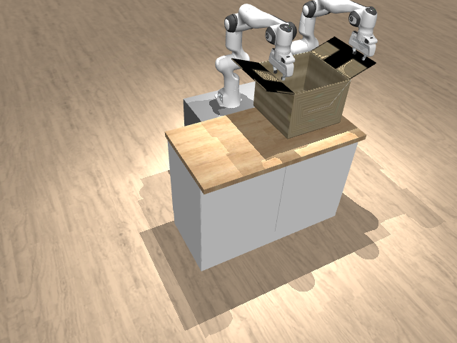 Both box flaps closed (joint states close to 0, within 0.1 tolerance)